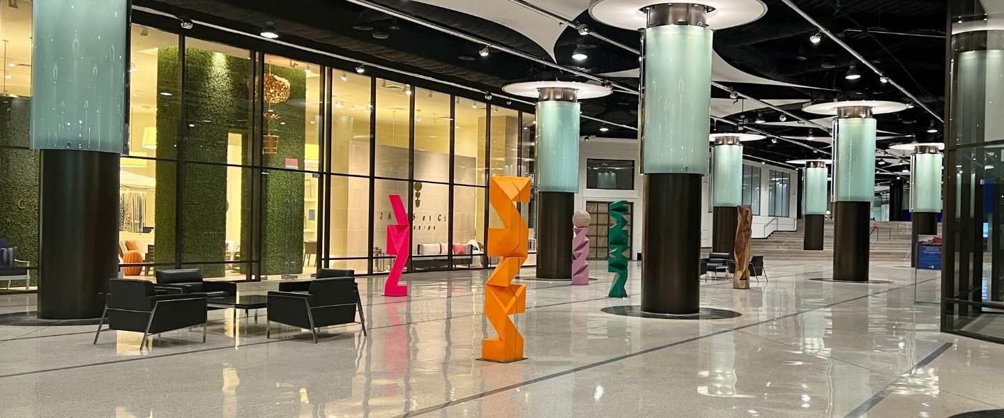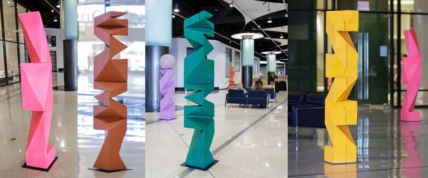 You are invited to discover the striking sculpture installations gracing the Blue and Green lobbies at the Pacific Design Center. These captivating pieces, crafted by renowned artists, bring bold, contemporary energy to our iconic spaces, creating a special experience that blends art and design seamlessly.