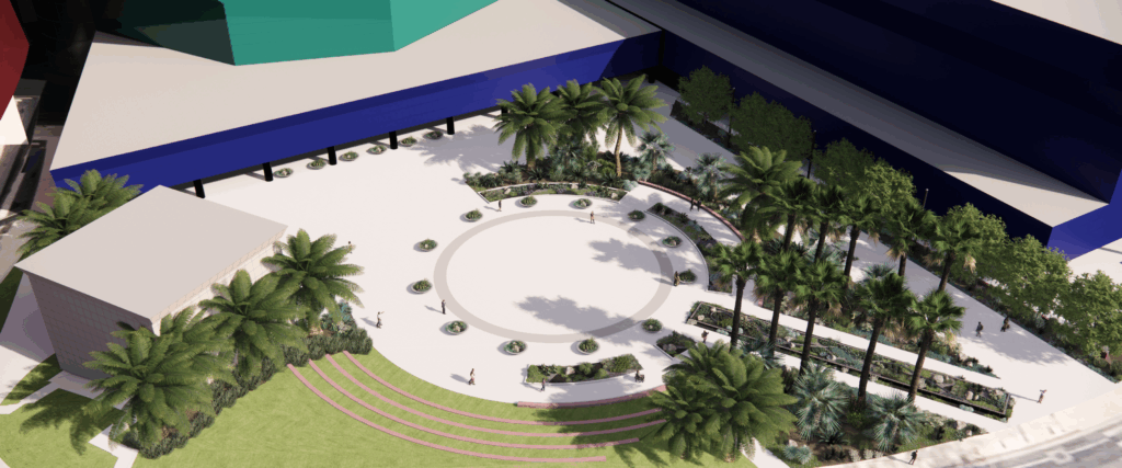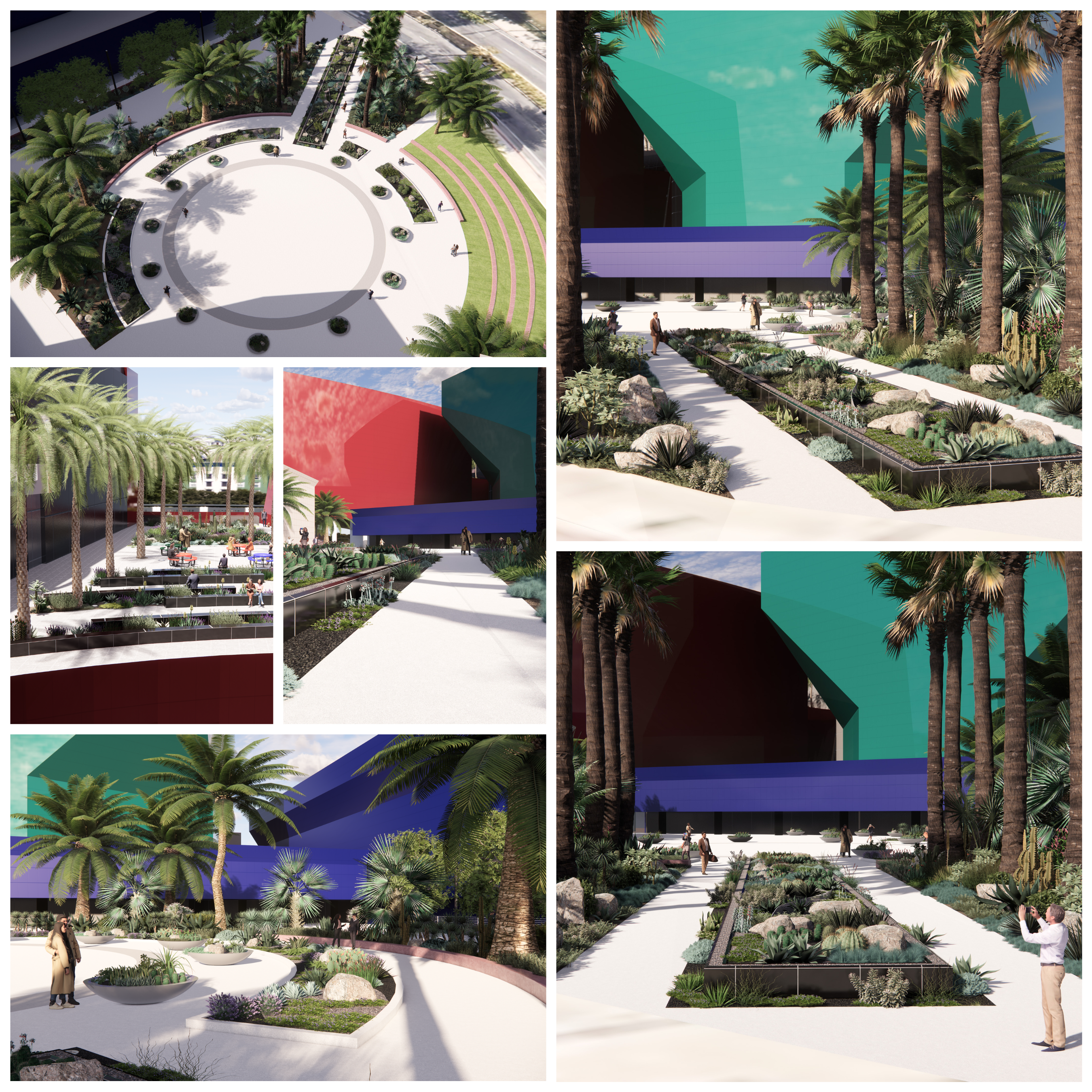 The central fountain, for example, is being transformed into a living planter — a sculptural and ecological centerpiece. In place of water features that are resource-heavy, we’re using native and drought-tolerant plants, drawing the eye through contrast and form. The layout supports temporary installations like stages and tents, while the plantings remain low enough to preserve visibility and accessibility. It’s a space that adapts. Because this is a public plaza, we intentionally avoided materials that could be hazardous or misused (like loose gravel or sharp boulders), and instead focused on subtle artistry — variations in tone and shape that evolve over time. We’ve selected species that are resilient, pollinator-friendly, and responsive to Southern California’s changing climate. Each specimen was chosen with care: to support biodiversity, require minimal maintenance, and reflect an ethos of regenerative design. Beauty alone is not enough. It must be matched by purpose.