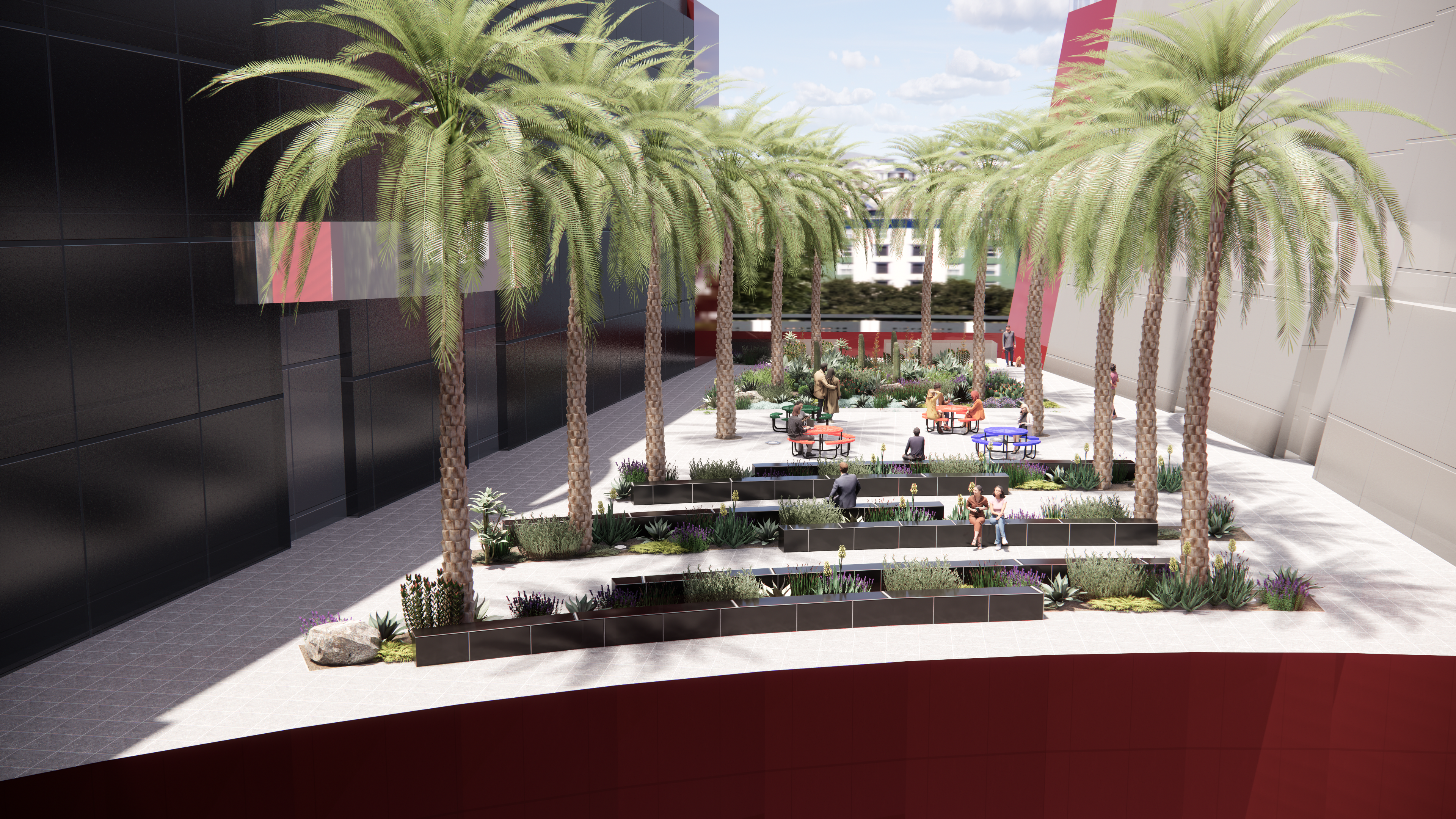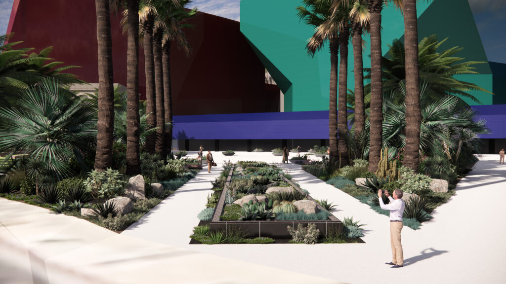 Function and need drive design — they shape the foundation of every creative decision. At the Pacific Design Center, we envisioned a landscape that would invite public experience and daily use, while also offering respite, reflection, and regeneration. We approached the site as an opportunity to create a kind of urban botanical garden — a curated, living installation of color, texture, and ecological intelligence. For tenants and visitors, we wanted to offer not just shade and softness, but something emotionally resonant. Spaces to linger, connect, or simply breathe.
